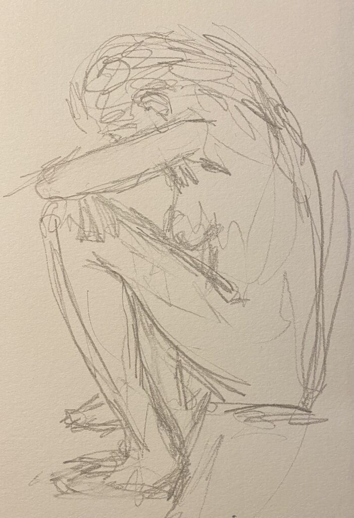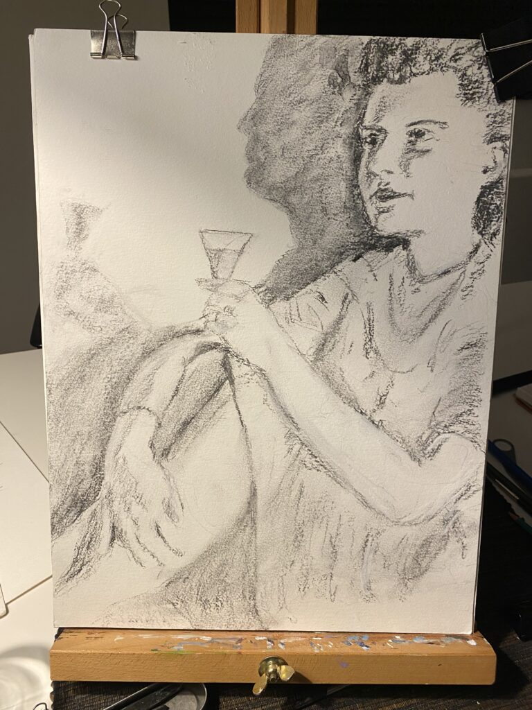 Naar foto mbv iphone app Da Vinci Eye. Hieronder mijn eigen versie uit de losse hand zonder ‘overtrekken’ met behulp van de app. Wat een groot verschil!